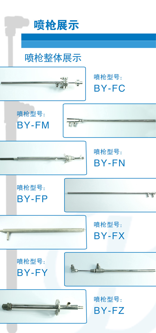 該雙流體噴槍采用國外先進技術生產,在SNCR脫硝行業(yè)有大量成功業(yè)績。噴嘴采用耐熱不銹鋼制造,噴槍包括嘴頭、加長桿、混合器及連接槍座等主要部件,噴槍通過軟管與還原劑管、壓縮空氣管連接。在日常的使用中即使不噴射還原劑,只需保持壓縮空氣的不間斷供應,即可維持噴管的基本冷卻要求,不易損壞。
