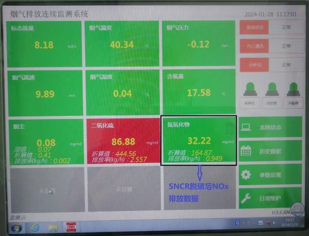 湖北景目環(huán)?,F(xiàn)有一臺(tái)15t/h循環(huán)流化床鍋爐,鍋爐煙氣NOx初始排放濃度約為700mg/m3。經(jīng)我司總包煙氣處理,脫硝技術(shù)路線采用爐內(nèi)SNCR脫硝進(jìn)行處理,經(jīng)環(huán)保升級(jí)改造后,脫硝效率超過70%。鍋爐最終排放煙氣中NOx排放濃度降低至180mg/m3以下,滿足當(dāng)?shù)丨h(huán)保排放要求。