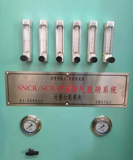 還原劑依次通過壓力表、流量傳感器、電動執(zhí)行球閥及角座閥,按照控制系統(tǒng)給定的流量設(shè)定計(jì)量輸出,在分配穩(wěn)壓緩存后以相同的壓力分別經(jīng)過可調(diào)節(jié)浮子流量計(jì)被送到還原劑出口管道。
